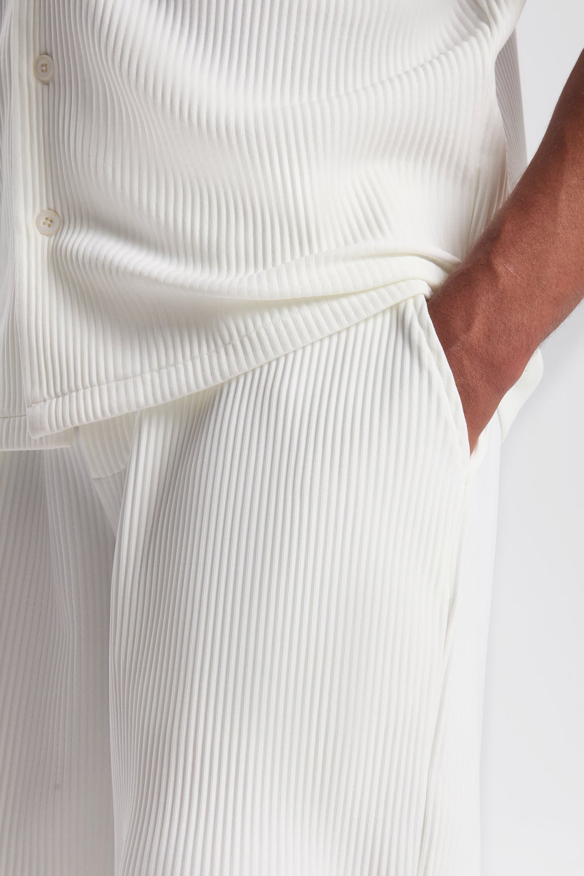 Experimentează confortul și stilul cu acești pantaloni scurți plisati fin—perfecți pentru zilele relaxate sau pentru a-ți eleva ținuta de zi cu zi.